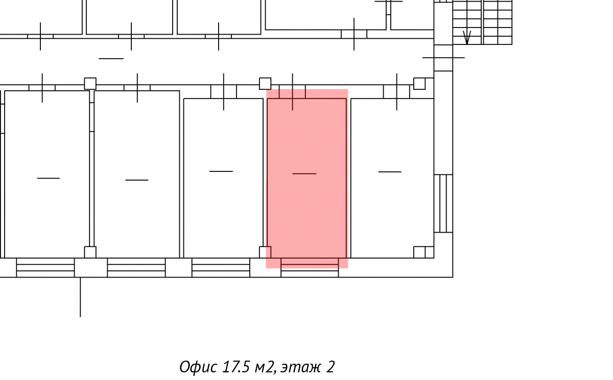 Помещение площадью 17,5 кв. м расположено на 2 этаже здания на территории технопарка "Нарвский".