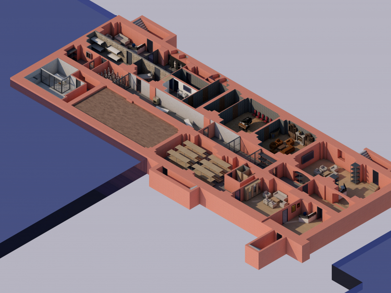 Созданию необходимого антуража способствуют переплетение коридоров, тупики и потайные закутки.