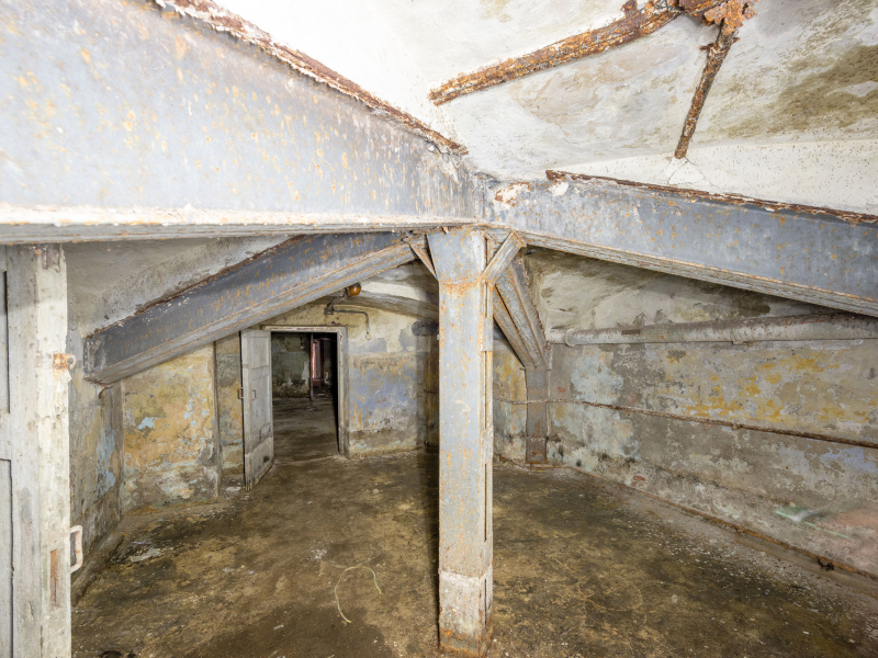 Сейчас внутри бетонные полы и стены, а высота потолков составляет 1,65 - 2,8 м.