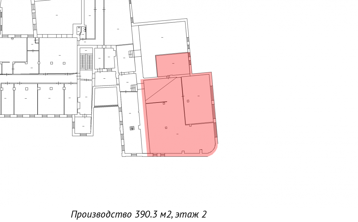 Помещения общей ПЛОЩАДЬЮ 390,3 кв. м расположены на 2-м ЭТАЖЕ здания.