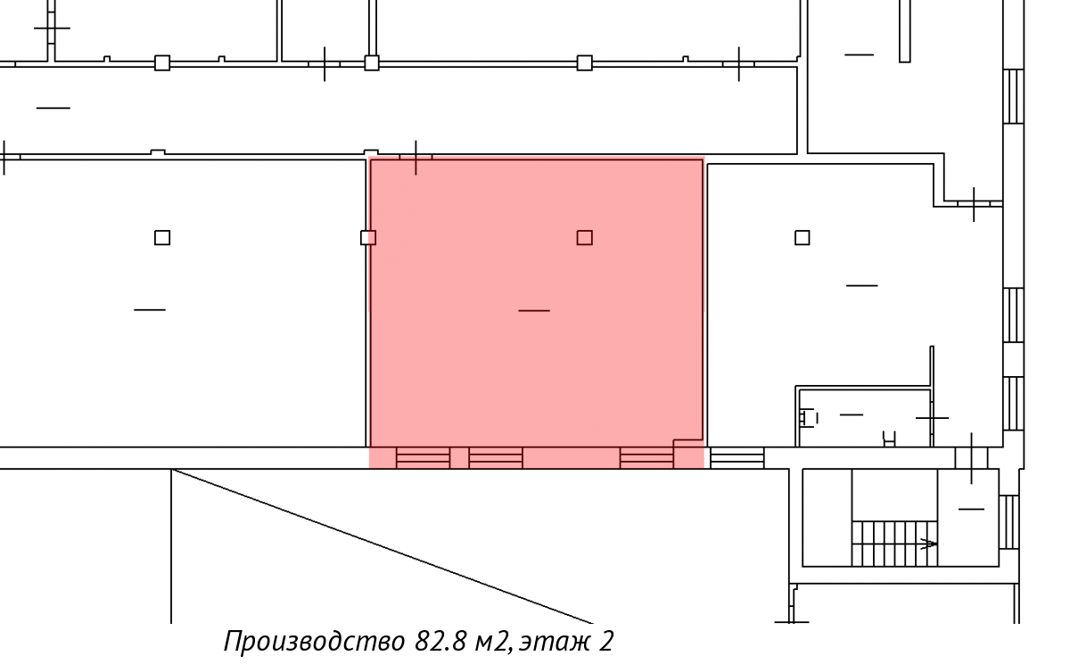 Помещение площадью 82.8 кв. м сдаётся в аренду под ПРОИЗВОДСТВО в Кировском районе.