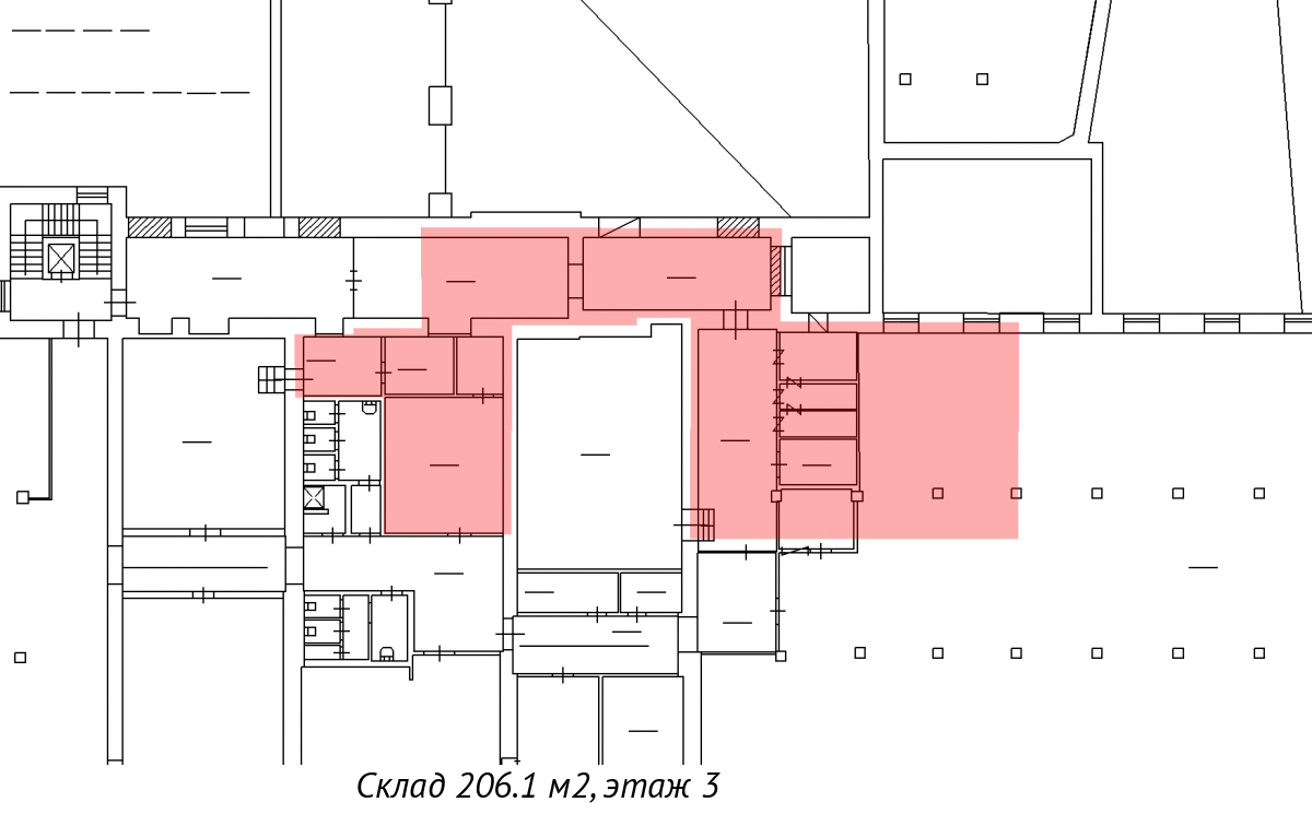 Блок состоит из нескольких помещений, которые можно оборудовать под зоны хранения, комплектации и упаковки.