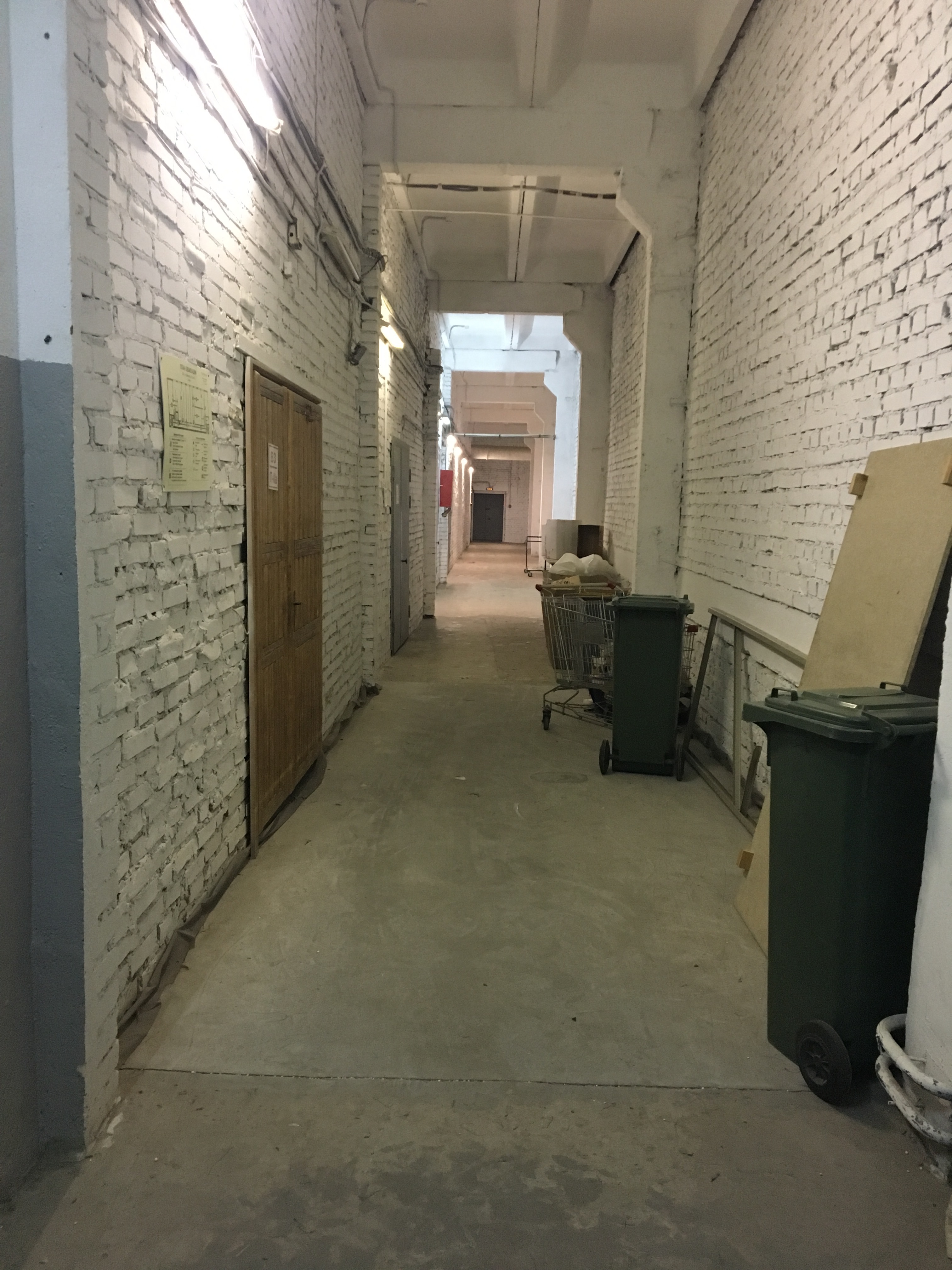 В помещениях ровный бетонный пол, потолки высотой 4,48 м.