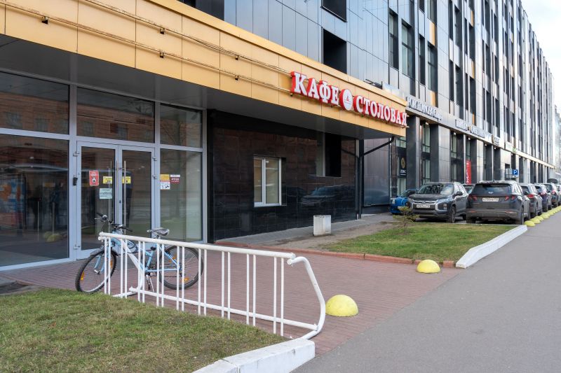 Инфраструктура внутри и рядом: открытое кафе, магазин и парковка для посетителей.