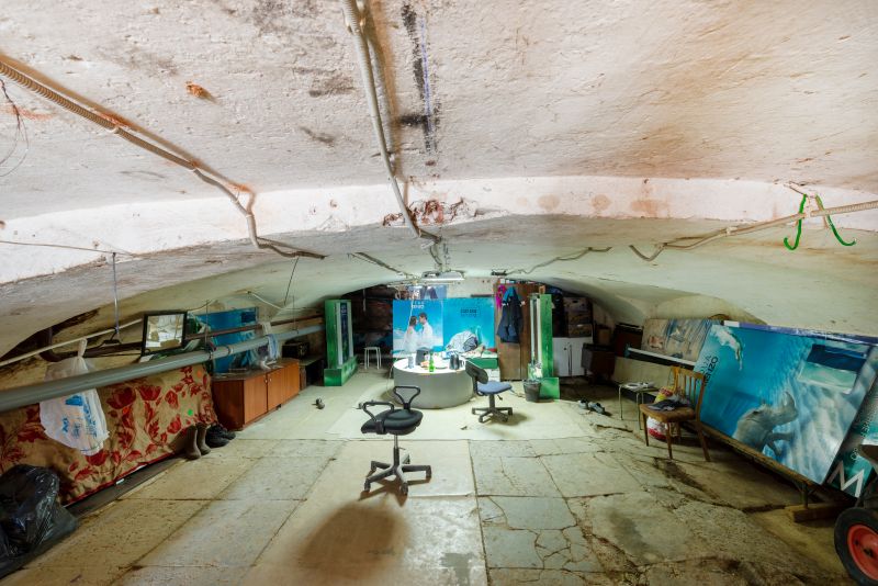 Внутри бетонные пол и стены, потолки высотой 1,6 - 2,10 м, имеются отдельные входы.