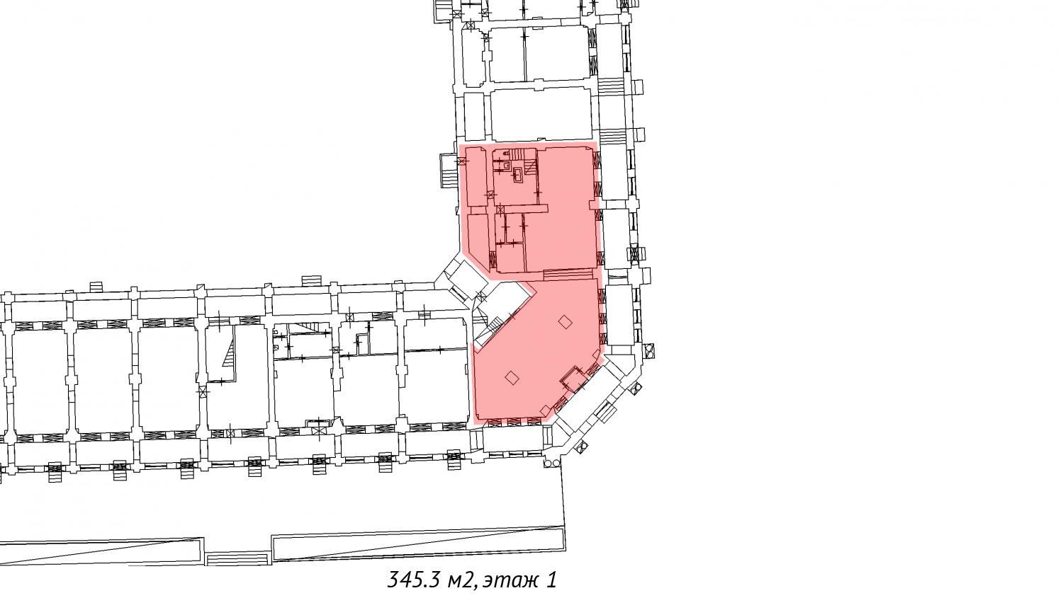 Общая площадь помещения - 345.3 кв. м.