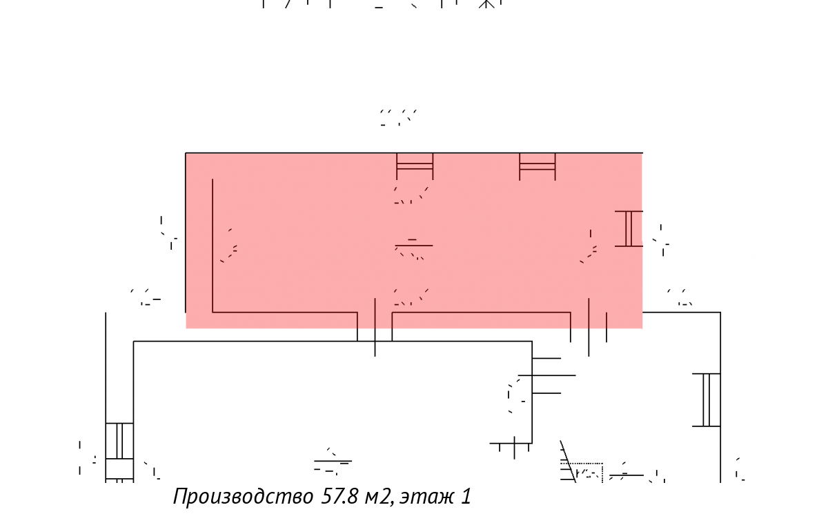 Площадь 57.8 кв. м, первый этаж здания.