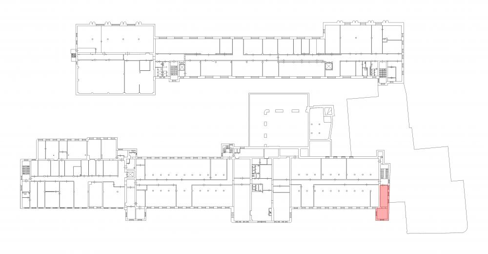 Угловое помещение, которое состоит из двух кабинетов.