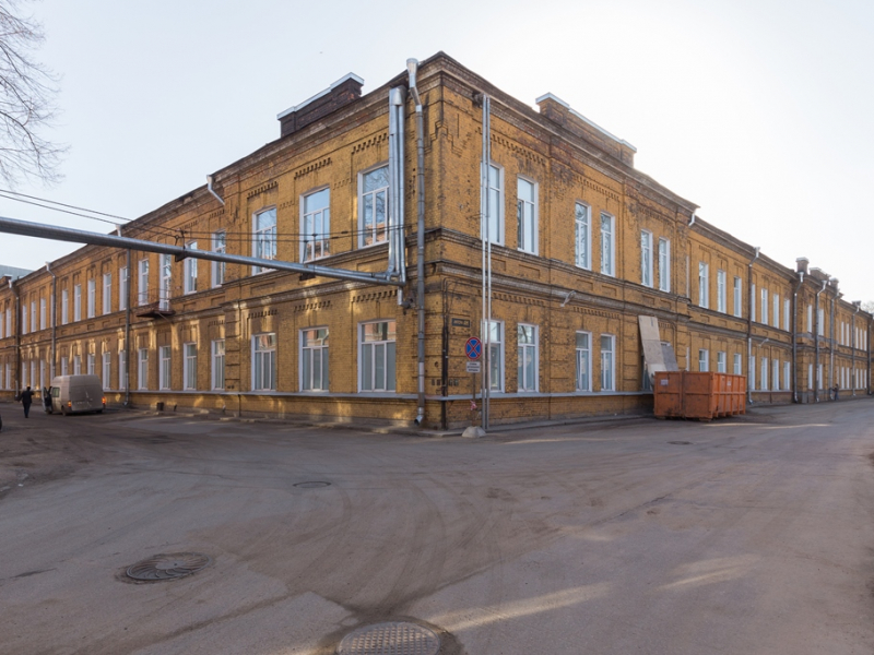 Здание расположено рядом с проходной со стороны ул. Михайлова.