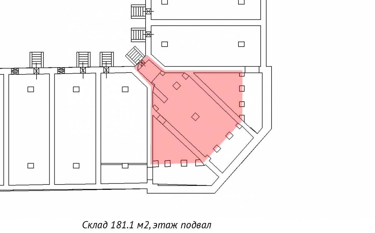 В подвале торгового комплекса "Гостиный Двор" сдается в аренду крупный блок площадью 181.2 кв. м.