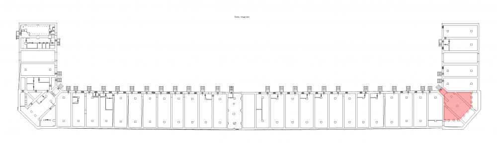 Предлагаемая площадь разделена на 3 секции, высота потолков составляет 2,10 м, стены бетонные.