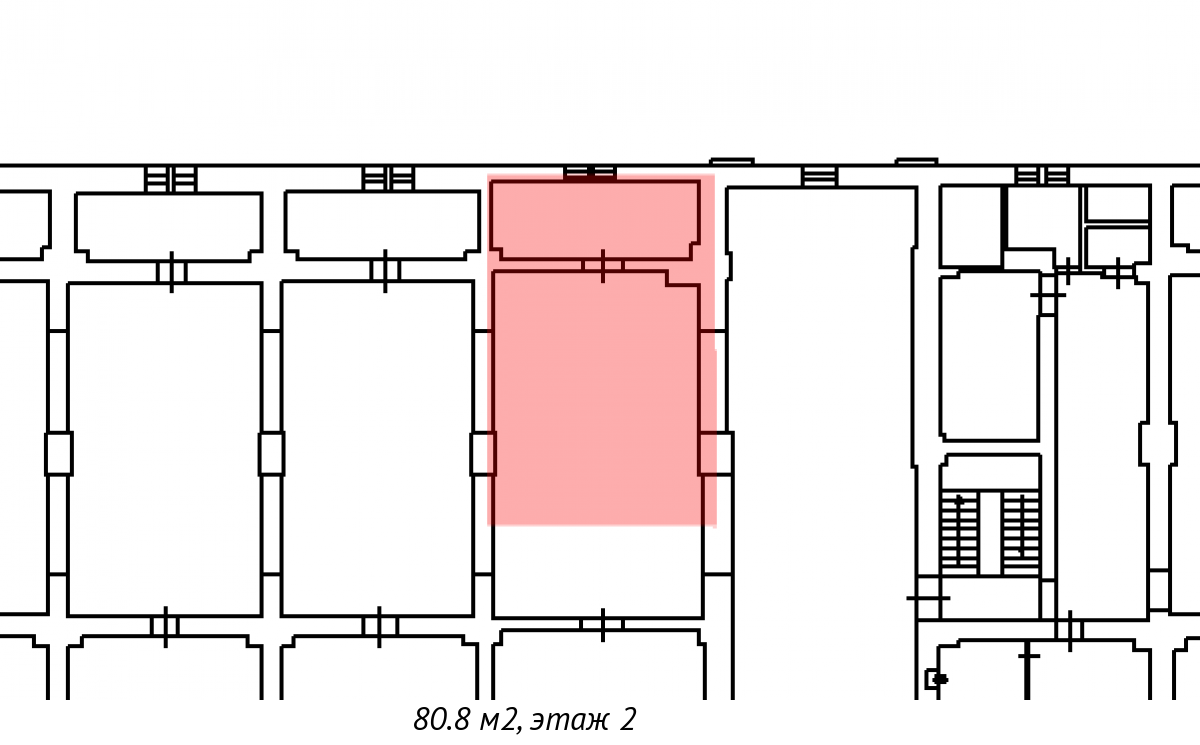 Площадь помещения - 80.8 кв. м.